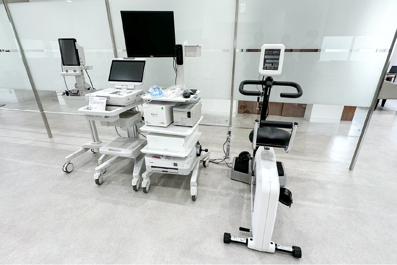 運動中の心電図、血圧、酸素濃度を測定し、心臓に負担をかけずに安全に行える最適な運動量を正確に決定します。(当院ではCPX検査を実施し、科学的な根拠に基づいた運動処方を行います。)