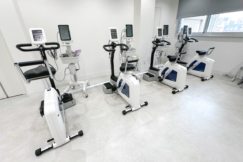 自転車こぎ(エルゴメーター)などを中心に、心肺機能と持久力の改善を目指します。